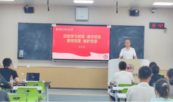马光明围绕“全面学习深入领会党章、党章的发展历史、党章的内容和结构”三个部分进行讲授,详细解读了党章总纲部分和党员义务、权利等方面的规定,要求入党积极分子必须原原本本、反反复复学习党章,深入领会党章中的思想内涵和精神实质,通过学习要深入领会党章是党的总章程,集中体现了党的性质和宗旨、党的理论和路线方针政策、党的重要主张,规定了党的重要制度和体制机制,是全党必须共同遵守的根本行为规范,引导大家通过党章的学习不断提高思想认识和政治觉悟,进一步端正入党动机。马光明要求广大入党积极分子在学习党章的同时结合日常学习工作认真学习《中国共产党纪律处分条例》,树牢遵守党纪党规的意识,把对党绝对忠诚扎根在初心上、成长于使命中、绽放新时代。课上学习传达了校党委《关于开展党纪学习教育的实施方案》的要求。