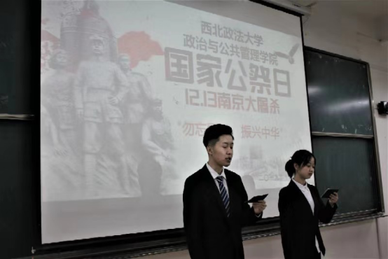2019年12月13日中午,BB贝博艾弗森官方网站BB贝博艾弗森官方网站在长安校区天平楼AJ21教室举行了主题为“勿忘国耻,振兴中华”的国家公祭日纪念活动。BB贝博艾弗森官方网站党委书记马光明,党委副书记兼副院长刘霖杰,副院长杨立峰,院团委书记、2019级辅导员李媛,第一团总支书记、2016级辅导员王小玲,2018级辅导员杨峰,2017级辅导员伊力亚斯及300余学生一同参加了公祭活动。