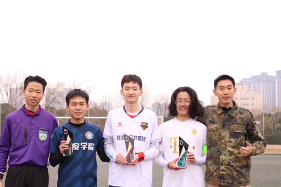 决赛的一波三折就像是整个赛事阶段的缩影,从小组赛开始,人员不齐整,没有经过系统训练的影响使得每一场比赛都需要场上的每一名队员拼尽全力赢得比赛。小组赛一胜两平,奋力冲进八强。八进四比赛中对战商学院,同学们克服严寒,以防守反击的战术2:0赢下比赛。半决赛中面对夺冠热门公安学院,全队放平心态,收缩防守,以众志成城的姿态将比赛拖入点球大战,最终通过翟博文点球一击制胜。决赛中,面对国际法学院开场二十分钟就进球的困难局面,进入到中场休息后我们及时的调整战术,加强进攻,在下半场开场后不久通过一脚远射扳平了比分。比赛进入到尾声阶段再一次的失误丢球,几乎让比赛胜利的天平全部倾斜,球队还是保持顽强的斗志,做好防守反击,在比赛行将结束之际再一次扳平比分,进入点球大战,并最终赢得了比赛。