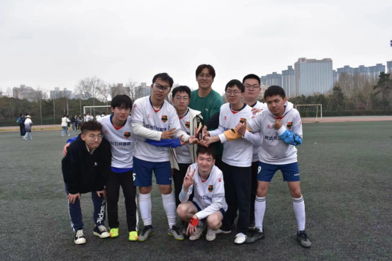 在这样一支球队里,每个人都努力的做好自己分内的事。放低姿态,以学习和求教的态度在每一场比赛中不断进步,不断为团队注入新的活力。大家彼此包容,相互成就,不因对手强大而产生畏难情绪,始终迎难而上。场上球员与场下政管学院的支持者们一起形成了一股强大的合力,让球队无论在什么样的境遇下始终保持从容,做好自己。可以说,这个冠军不光属于球员,更属于每一个支持球队的同学。在容易被结局定义的大环境之中怀揣着孤注一掷的勇气,相信这一次新生杯的夺冠能够给比赛的亲历者带去信心与幸运,保持对荣誉的不懈追求,政管足球一直都在努力。