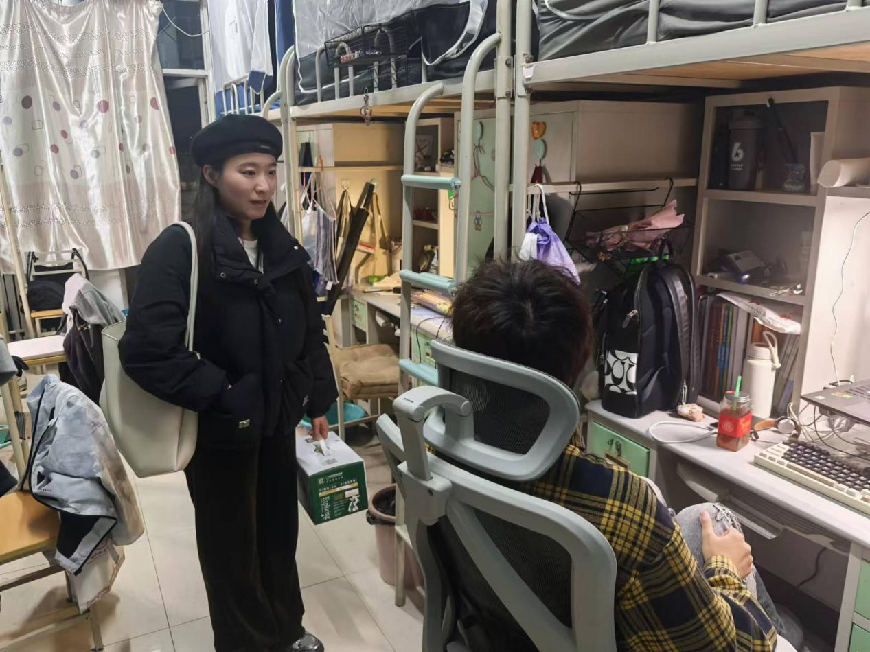 2024年11月21日晚,学院辅导员孙悦老师带着对同学们的深切关怀,携带精心准备的慰问品,前往男生宿舍楼,看望了在足球新生杯中因比赛受伤的2024级劳动与社会保障专业新生罗成希同学。