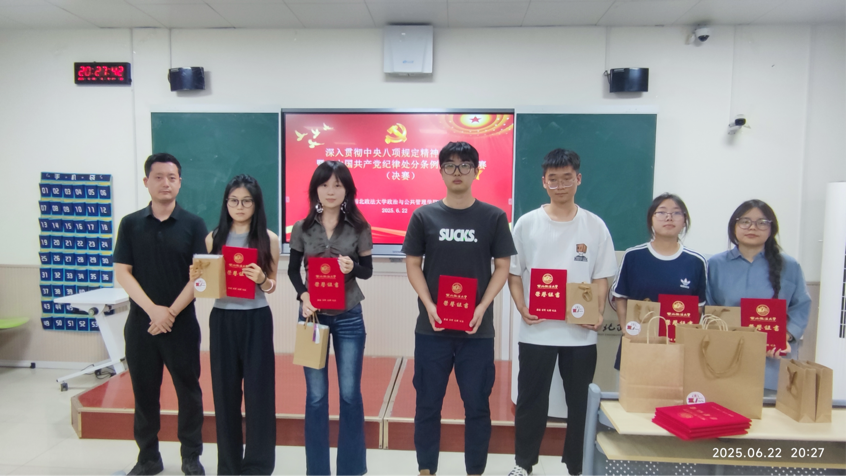 6月22日晚,由学院党委主办,学生各党支部联合承办的深入贯彻中央八项规定精神学习教育暨《中国共产党纪律处分条例》知识竞赛圆满结束。