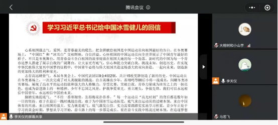 4月19日,BB贝博艾弗森官方网站本科生第一党支部举行集体学习活动,学习习近平总书记给中国冰雪健儿的回信。活动由党支部书记王小玲老师主持,支部全体预备党员与发展对象参会。