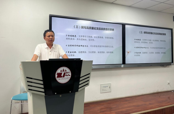 李永皇副主编结合自己多年从事民族理论与政策研究及期刊编辑工作的经验,从学术论文写作与规范、投稿与审稿、学术论文的写作建议、《贵州民族研究》2025年重点选题等四个方面进行了系统讲述。他特别强调学术论文不仅要有适中的选题,规范的论述,而且要立足学科前沿,紧扣现实问题,注重跨学科的研究方法,并就投稿应该注意的事项进行了细致讲解。报告结束后,李永皇副主编就师生们关注的具体问题进行了互动交流。