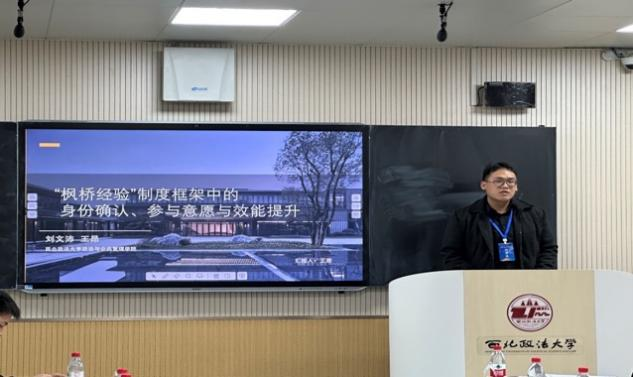 2023级中外政治制度研究生周佳慧以《新时代基层治理实现数字化转型的双重面向与优化路径》为题,进行汇报发言,论述了新时代基层治理实现数字化转型遇到的问题及对应的优化路径。吴瑞彤和李甜甜分别以《新时代“枫桥经验”视角下动物引发的社区纠纷及其治理问题》和《全过程人民民主实践中基层协商民主的作用、挑战及优化路径研究》为题进行交流发言。2024级研究生王昂以《“枫桥经验”制度框架中的身份确认、参与意愿和效能提升》为题进行汇报发言,提出基层治理中矛盾纠纷的有效解决机制必须基础参与主体身份的界定、确认与认同。2022级政治学与行政学专业本科生徐毓以《枫桥经验视阈下“村改居”社区多元共治模式与路径优化》为题进行汇报交流。