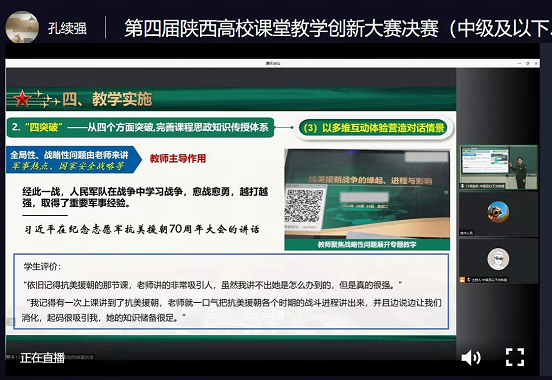 2022年4月9日-10日,陕西省第四届高校课堂创新大赛(本科)省级决赛顺利举行,BB贝博艾弗森官方网站根据教育厅《关于观看陕西省第四届课堂教学创新大赛(本科)省级决赛的通知》的相关要求,积极组织贝博教师观摩此次比赛。