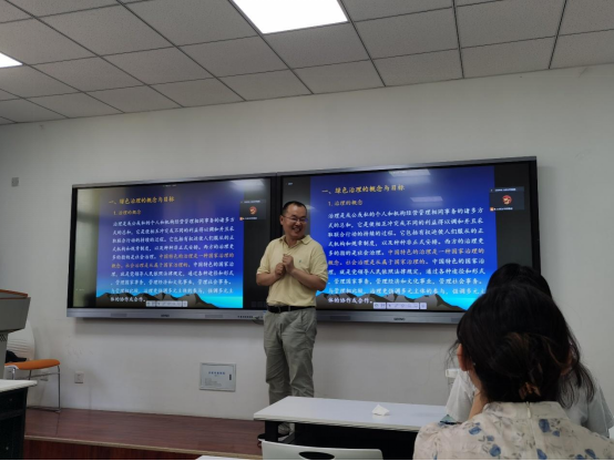 侯学华对本场讲座做了总结,线下研究生与史云贵教授积极互动。本次讲座使大家获益匪浅,学生们了解了更多关于绿色治理的知识,意识到绿色心态和绿色人生的重要性。